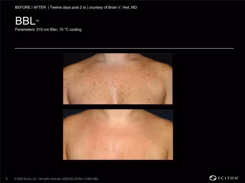 BBL™from Sciton uses the power of light to target the pigment within the skin. Utilizing the CoolComfort handpiece, the BBL2 flashes specialized light as it is quickly moved across the treatment area. The pigment is initially darkened, helping you know that you had an optimal treatment, then over time, your body’s natural healing process will remove the pigmented cells replacing them with fresh new undamaged cells.